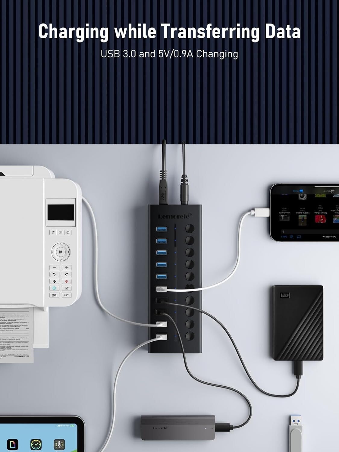 Ben je op zoek naar meer USB-poorten en een georganiseerde werkplek? Met de Lemorele TC119 10-Poorts USB 3.0 Hub vergroot je jouw connectiviteit razendsnel en houd je al je apparaten overzichtelijk aangesloten. Deze krachtige hub zet één enkele USB 3.0-poort om in maar liefst 10 supersnelle poorten, ideaal voor toetsenborden, muizen, printers, externe harde schijven, USB-sticks en nog veel meer.