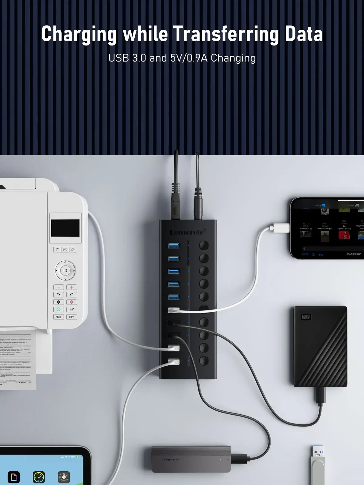 Heb je steeds te weinig USB-poorten voor al je apparaten? Met de Lemorele TC111 USB 3.0 Hub breid je moeiteloos één enkele USB 3.0-poort uit tot maar liefst 7 veelzijdige poorten. Perfect voor thuiswerken, gamen, of creatieve werkzaamheden waarbij meerdere apparaten tegelijk aangesloten moeten worden.