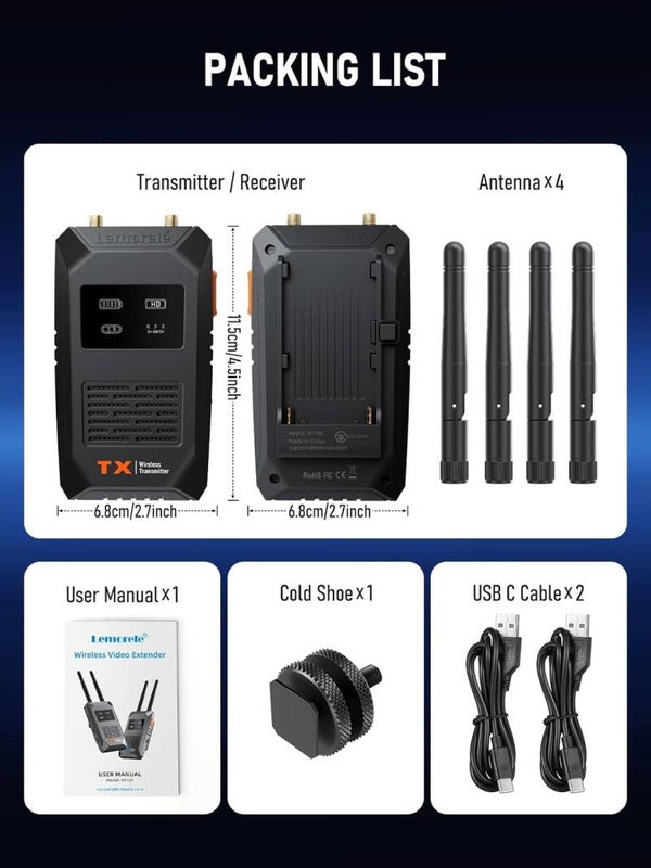 De Lemorele R1100 Wireless Video Transmission Set is een professionele oplossing voor het draadloos verzenden van HDMI-signalen met hoge beeldkwaliteit en minimale vertraging.